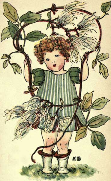 Then forward came the four linked hand in hand and curtsied. Then the Holly kissed the Mistletoe, and the Blackberry and the Spindleberry raised their banners on high, while all the flowers marched through hand in hand.